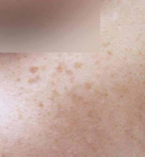 輪郭がはっきりしている褐色や黒っぽいもの。原因である紫外線が当たる部分に多い。