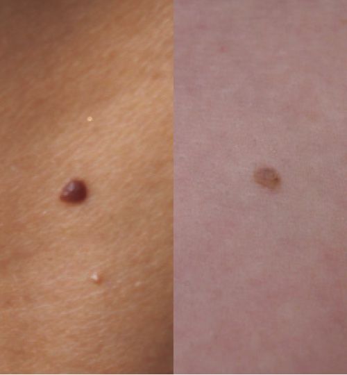 肌の色素をつくるメラノサイトの良性腫瘍。先天性は遺伝、後天性は紫外線による影響。