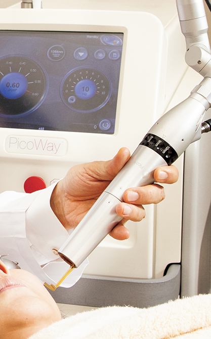 「ピコレーザーを使用し、照射する時間や波長を変えて3つの照射方法を組み合わせ、必要に応じて数種のレーザーなども取り入れます」。