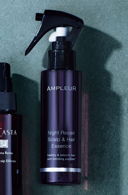 先進皮膚科学が生んだヘアエッセンスで翌朝の髪が上質に頭皮も髪も修復する先進成分「ボンディングペプチド」を配合し髪の芯からしなやかに。さらに独自成分のブラックキノンが黒く艶やかな印象へ。ナイトリペア スカルプ&へアエッセンス 100ml 6600円/アンプルール