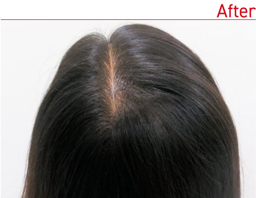 外用薬の処方による治療を続け、通院後12か月経過した状態がこちら。全体的に髪の量が増えふさふさとした印象に。透けて見えていた頭皮も目立たなくなっている。