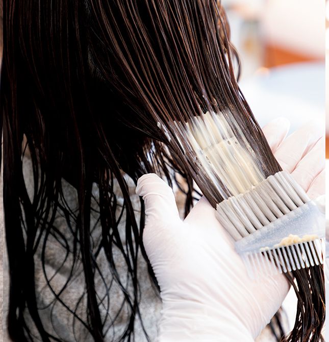 さらに髪質改善を狙ったプロフェッショナル薬剤を3種類重ねて塗布。この後、さらに「トステア®」を重ね塗りする。