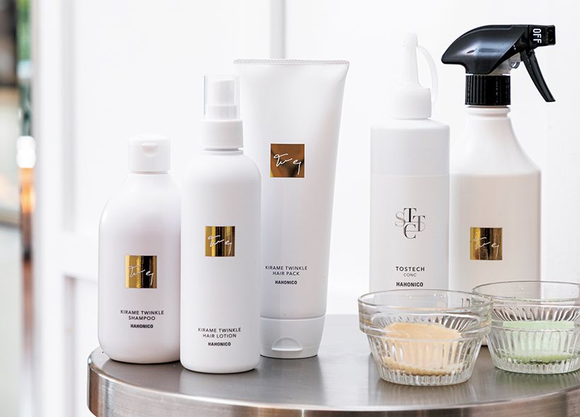 「革命的な成分の『トステア®︎』は髪のゆがみに対する補正効果や髪の強度アップなどに効果を発揮します。熱を加えることで、キューティクルを引き締める成分も含んでいるので、なめらかで素直にまとまる髪に仕上がります。『トステア®︎』を含むシャンプー、トリートメント、プロフェッショナル薬剤などを組み合わせ、毛髪深部まで浸透させます」。