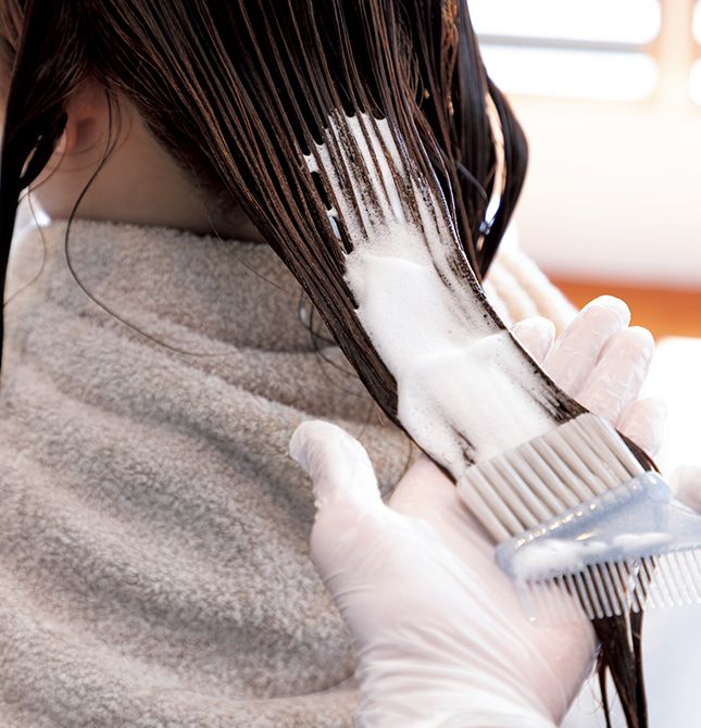 高濃度の「トステア®」を希釈し、フォーム状にして塗布。成分を惜しみなくたっぷりと根もとから毛先まで届ける。