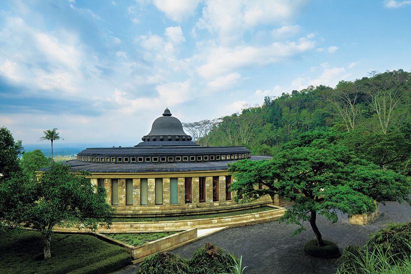 アマンジウォの外観。近くにある世界最古の仏教遺跡といわれるボロブドゥール寺院と一体化したような建築様式。