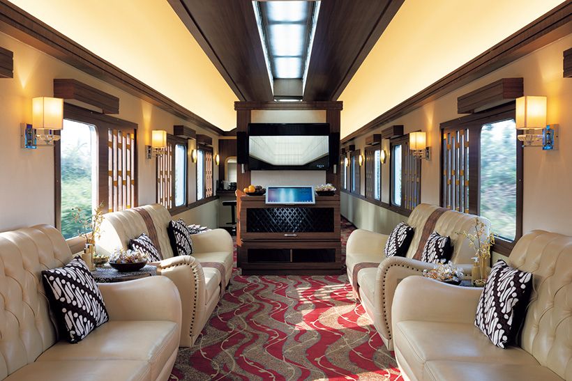 ジャカルタから「アマンジウォ」までの7時間の列車旅を「アマン」がエレガントに演出。現地の鉄道会社と連携し、列車の一両をアマンの世界に仕立てています。