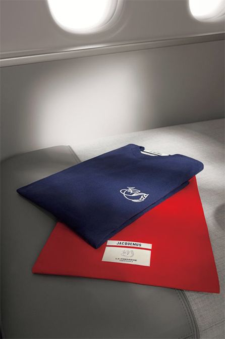 「ジャックムス」がデザインしたラウンジウェア。胸もとにはエールフランス航空のヘリテージロゴである海馬(ヒッポカンポス)の刺繡。