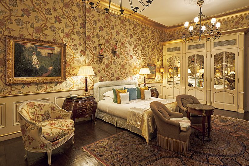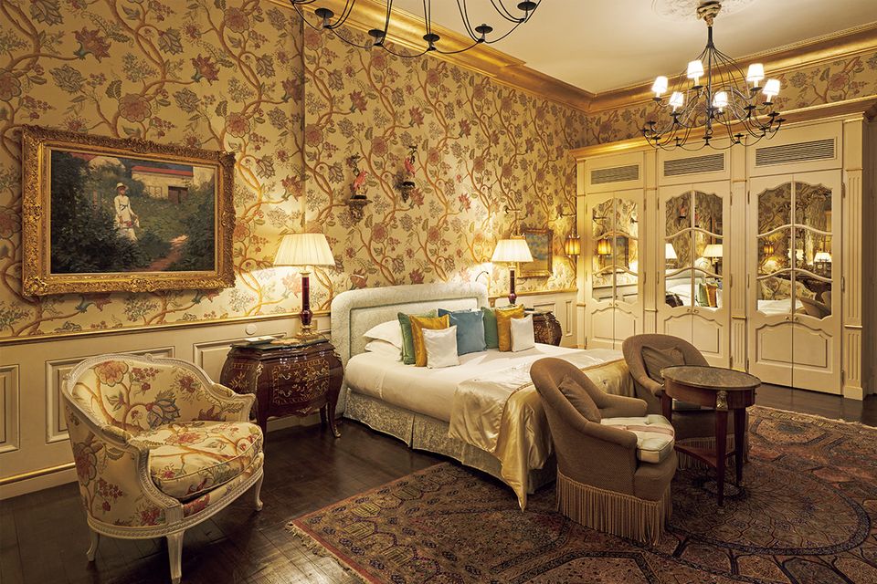 ベッドルームはガリシ氏の感性が息づくバロック調装飾でフィレンツェの気品が薫る。