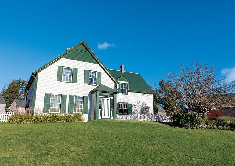 緑の切妻屋根の家、「グリーン・ゲイブルズ」。アンやマリラ、マシュウの部屋も再現されている。2階の真ん中のアンの部屋から“お化けの森”が見える。現在建物を含む一帯はカナダの国定史跡となっている。
