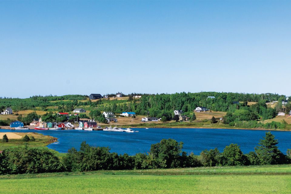 島の象徴的な景勝地、フレンチ・リバー。島には多くの漁村があり、フレンチー・リバーは北部に位置する小さな漁村。青い水面の入り江には、カラフルな小屋や漁船が並んでいる。右の地図・カナダの東側に浮かぶ、面積約5660平方キロの小さな島、プリンス・エドワード島。先住民族のミックマック族は、その弧を描いた細長い形から「アベグウェイト=波間に浮かぶゆりかご」と呼んでいたという。