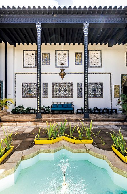 シンメトリーなデザインに幾何学模様などイスラムアートの様式美が生かされたコートヤード。