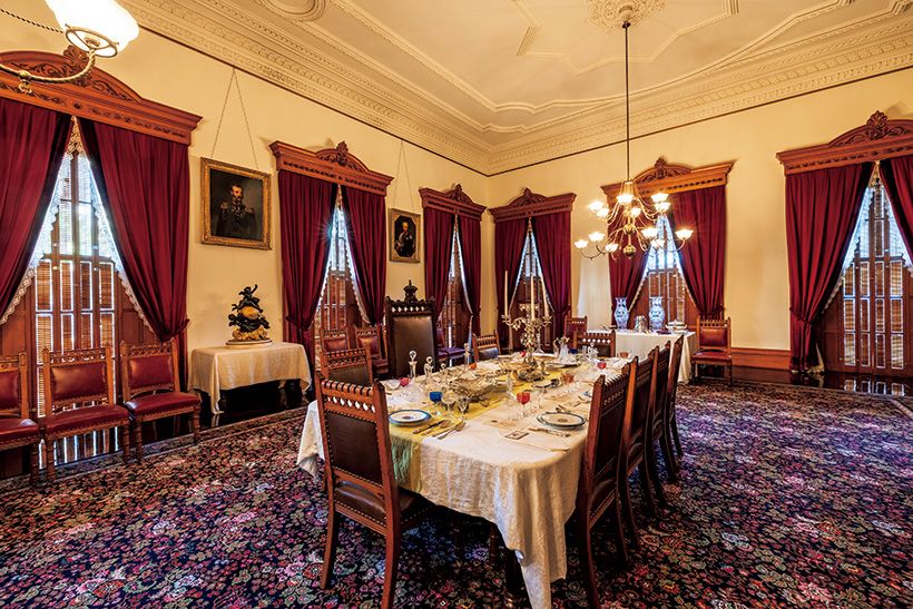 正餐室のテーブルの上にはフランス皇帝ナポレオン3世から献上された貴重な時計が。