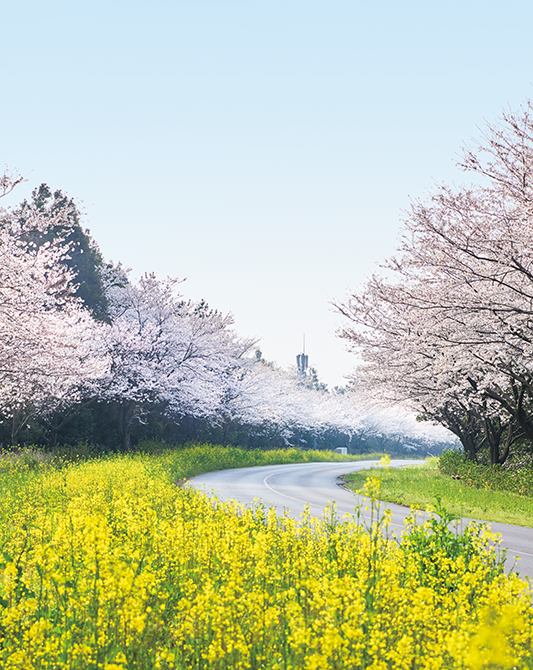 桜と菜の花のハーモニーを楽しむ約10キロのドライブコース