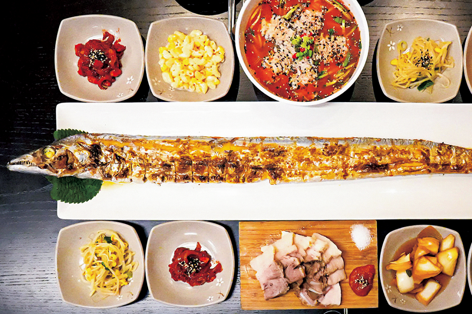 料金:写真の「太刀魚の丸焼き(2人前セット)」は6万9000ウォン(日本円で約7600円)