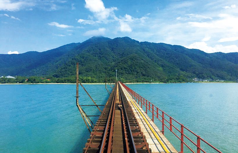 「浦嶋太郎」伝説の舞台といわれる若狭湾の奈具海岸や、スリル感ある全長約550メートルの由良川橋梁を走る「丹後くろまつ号」。