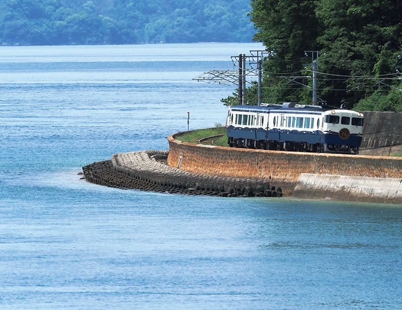 海沿いを行く呉線をのんびり走りながら、穏やかな海に浮かぶ島々の絶景を楽しむことができます。