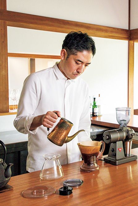 コースの最後のコーヒーまで赤井シェフが目の前で丁寧に淹れてくれる。