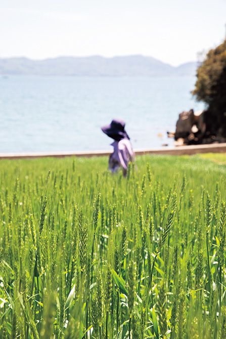 向かいの前島で自家栽培し、石𦥑挽きで製粉した国産小麦を足すことで味わいが増すという。
