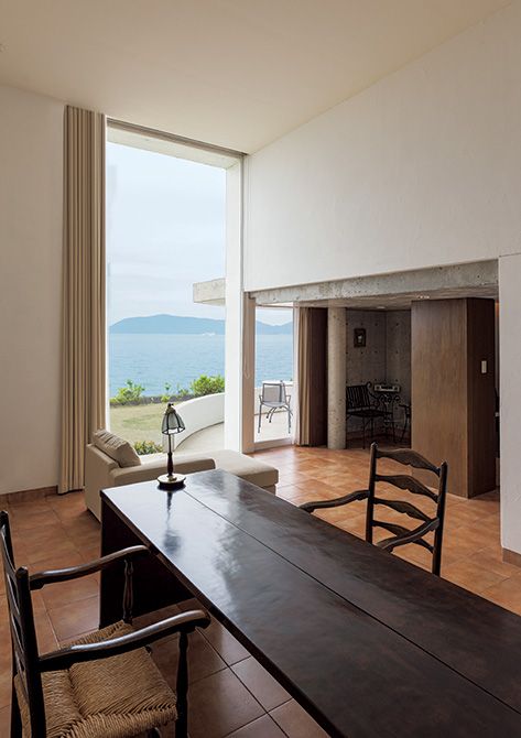 宿泊用のヴィラは5つ。天井が高く、テラスでの朝食が心地よい。