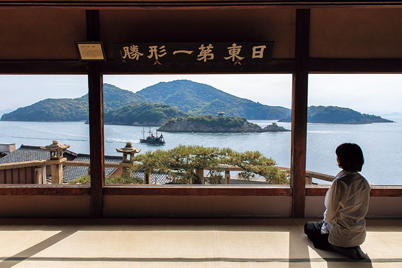 宿の近くにある名勝が、福禅寺の本堂に隣接する「對潮楼」。江戸時代に創建された客殿で、座敷からの海景が素晴らしく、18世紀に朝鮮通信使が賞賛した書が額としてかけられています。心静かに穏やかな時間を過ごせる場です。