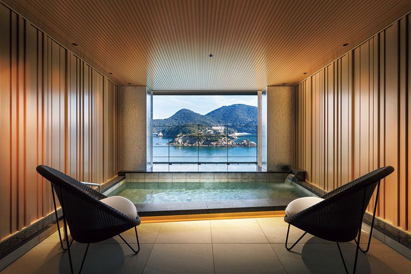 瀬戸内海のほぼ中央に位置し、古くは潮待ち港として栄えた鞆(とも)の浦(うら)。海に面して立つ「汀邸 遠音近音」は、全室に半露天温泉風呂を備えたオーシャンビューの絶景宿です。