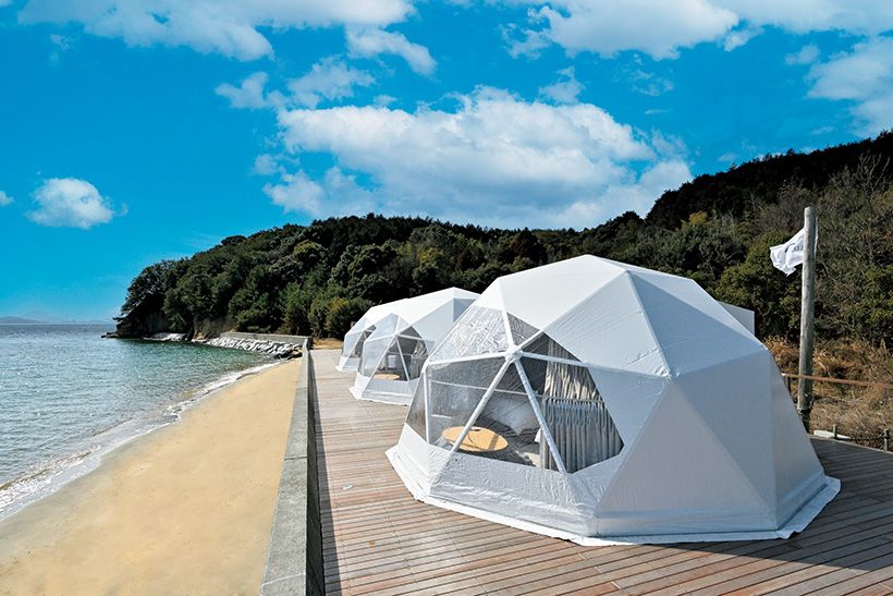 海際のドーム型グランピングテントで海を感じながら眠るのもおすすめ。