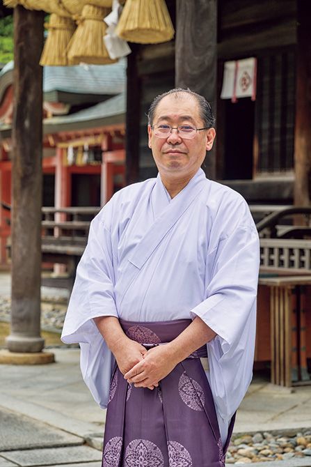 大山祇神社82代目、三島安詔宮司。地域活性化のための活動も熱心に行う。