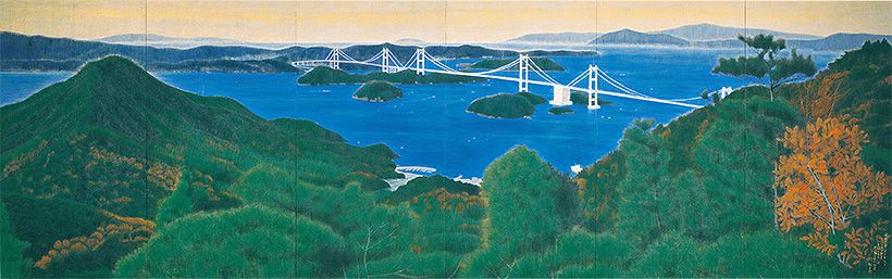 平山郁夫が生まれ、少年時代を過ごした生口島に1997年オープン。所蔵する約1200点の平山作品を展示する美術館です。所蔵作品には1999年の瀬戸内しまなみ海道開通を記念して描いた水彩素描「しまなみ海道五十三次」があり、平山がスケッチした各ポイントには、その絵を陶板に焼きつけたオブジェが設置されています。