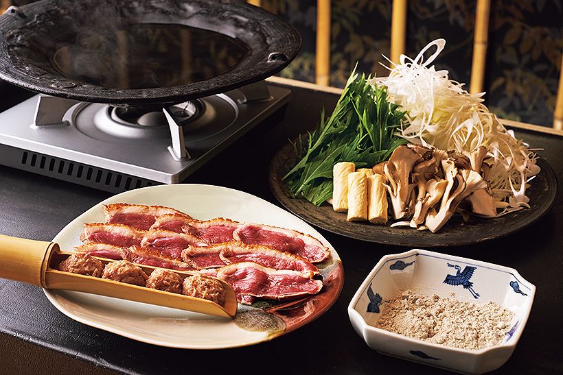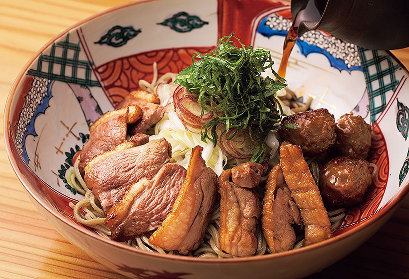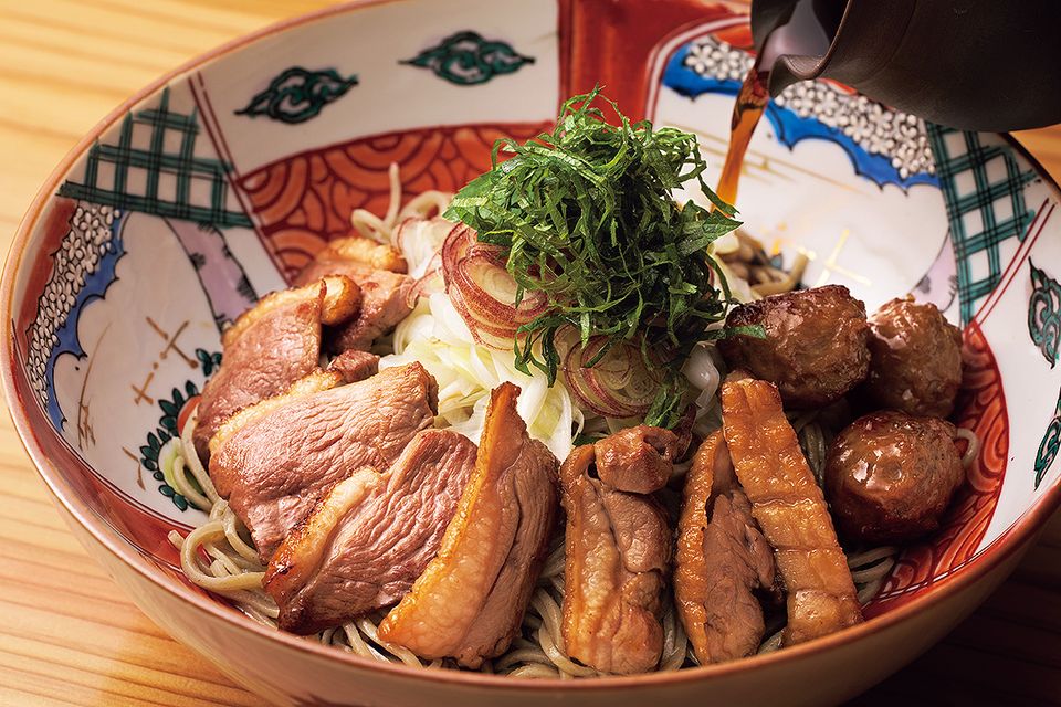 創業105年の老舗鴨商、東京・築地「鳥上」が、蔵王連峰の麓にある専用農場でのびのびと育てた合鴨「蔵王深山竹炭水鴨」を用いた一品料理と、江戸風のきりっとしたつゆでいただく香り高き手打ちそばが自慢です。