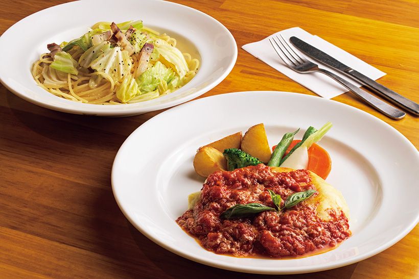手前から「ベンソン」の「イタリアンチーズハンバーグ」1500円、「パンチェッタとキャベツ」1500円。撮影/西山 航