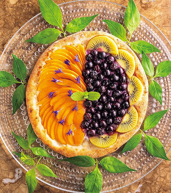 「エンボカ追分」の「びわ×ブルーベリーのデザートピザ」。コースのオプションで1名500円追加。撮影/本誌・坂本正行