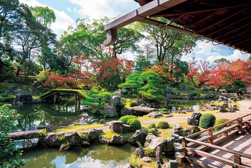 <Q. 非公開・事前予約制の感動スポット>醍醐寺の三宝院。庭園は豊臣秀吉が基本設計したものです。秀吉が醍醐寺で「醍醐の花見」をしたことは有名ですが、秋にも「醍醐のモミジ狩り」を計画したといわれています。