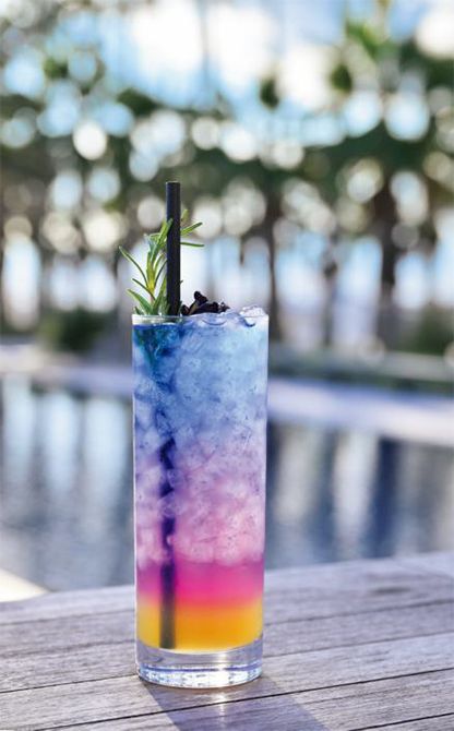 宿泊時の朝食場所となるテラスレストラン「マリブファーム」。マリーナから見える夕景をイメージした「マジックアワーレモネード」は、同店の人気ドリンクの一つ。