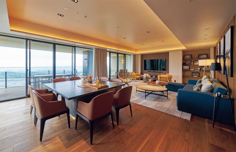 ホテルの客室は愛犬と泊まれるヴィラ5室を含む全120室。豊田会長の部屋はサーキットビュースイートの1つで、疾走感溢れるレーシングカーの写真が飾られている。
