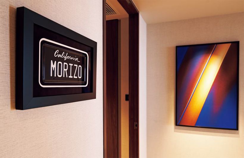 会長の愛称「MORIZO」の文字が輝くナンバープレート風インテリア。
