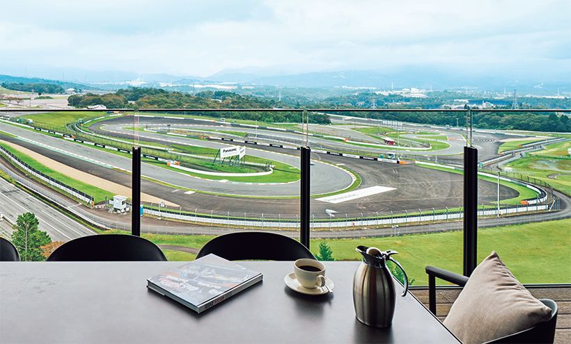 バルコニーから見渡せる富士スピードウェイでは、年間を通してレースが開催されている。また、コースでの体験走行なども楽しめる。