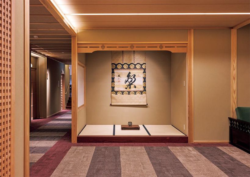 ロビーには火事の際に7代目が救った有栖川宮熾仁親王の書が復興のシンボルとして掲げられている。