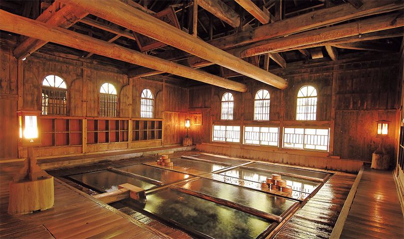 明治から昭和初期の面影を残す、足元湧出の大浴場