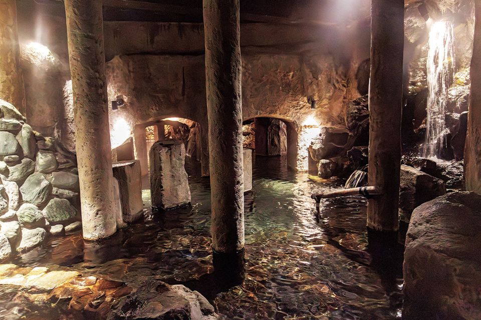 源泉は2本。どちらも体への負担が少なく体温に近い柔らかいぬる湯のため、ゆっくりと入浴を楽しむことができます。特に洞窟風呂は深さ約1メートルあり、静水圧効果で血流やリンパの循環が促進され、新陳代謝が活発になるといわれています。