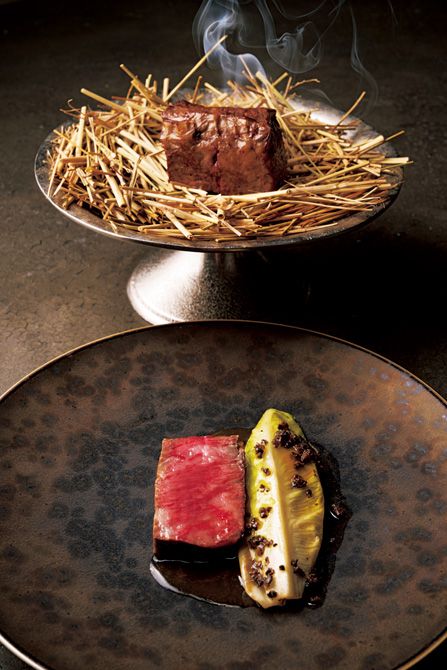薫香とともにいただく赤城牛の藁焼き。Photo:Wataru Nishiyama