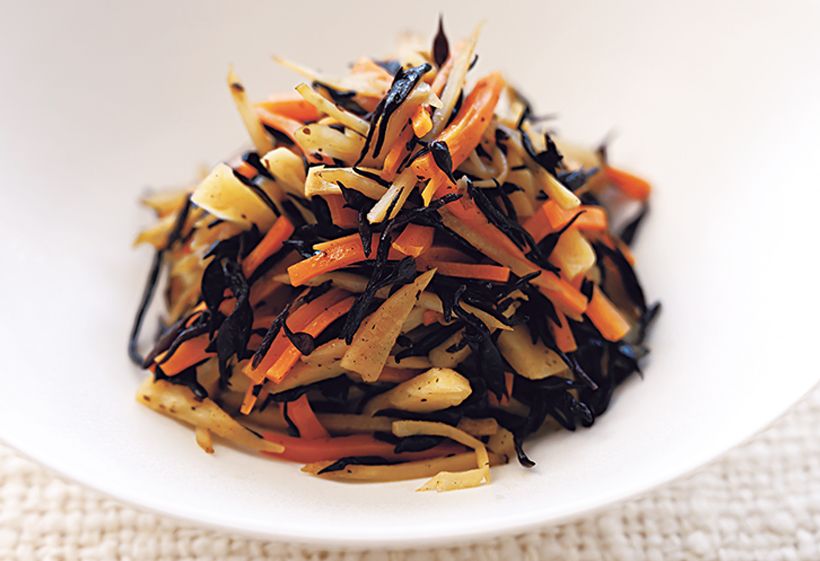 ごぼう、にんじん、れんこん、ひじきをたっぷりのしょうがと一緒にごま油で炒め、みりん、醬油で好みの味にととのえます(量はお好みで調整)。発酵性食物繊維が豊富な食材で作る常備菜を毎食とることで体調が整います。