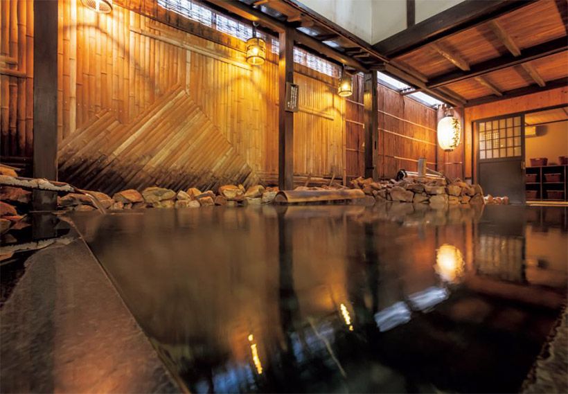 国民保養温泉地である鳥取県・岩井温泉「岩井屋」の大浴場「祝いの湯」。
