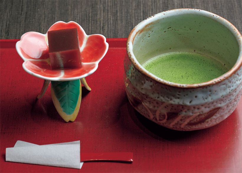 北海道・登別温泉「滝乃家」では、手製の羊羹、抹茶が振る舞われる。(撮影/阿部 浩)