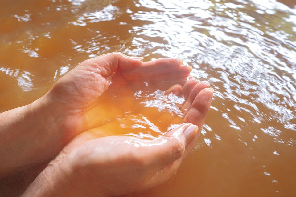 アルカリ性(pH値8.5以上)や酸性(pH値2〜3未満)の湯は、肌への刺激が比較的強く、長く付着させると肌が荒れることがあるそう。浸かった後は必ず上がり湯で流しましょう。㏗値が不明のときは“色がある、においがある、ぬるぬる・ピリピリするときは上がり湯”を目安に(一部例外あり)。
