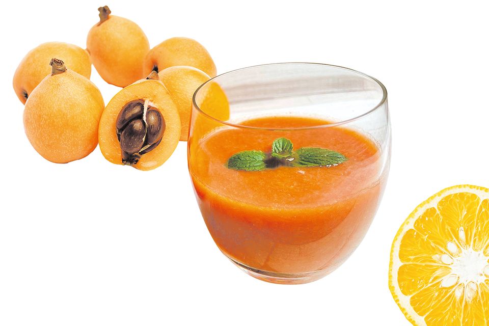 旬のびわと甘夏をたっぷり使った「びわと甘夏のスムージー」。潤いを補うびわと、ビタミンC豊富な甘夏の組み合わせでしっとり肌に。
