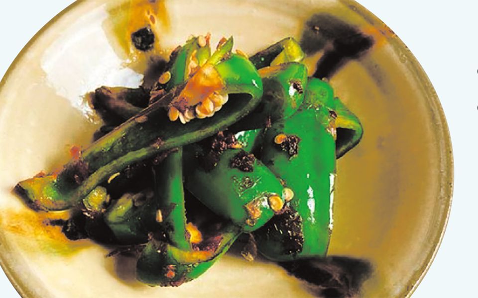 この時季の私の定番「やみつきピーマン」。種には補腎(エイジングケア)効果があるので、取らずに使うことをおすすめします。