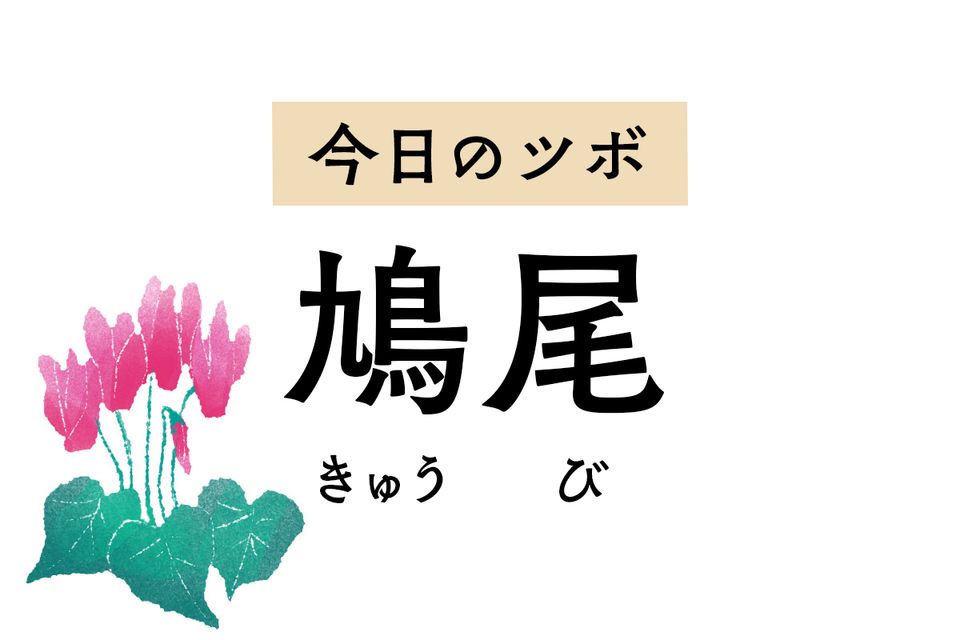 「鳩」は鳥の郭公(カッコウ)を指しています。胸骨剣状突起が郭公の尾に似ていることを形容したものです。鳩尾というツボは、その尾の下にあることから、鳩尾と名づけられています。