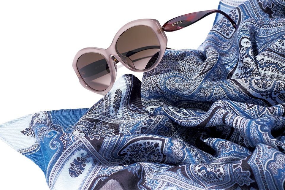 ショール(縦140×横140センチ)21万6000円 アイウェア4万656円/ともにエトロ