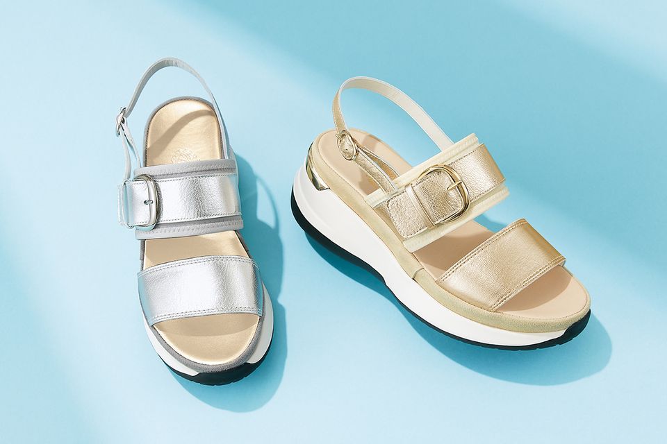 新作の厚底サンダルは、スポーティーかつ華やかな印象。軽量でクッション性が高いので疲れにくく、スタイルアップも叶えます。