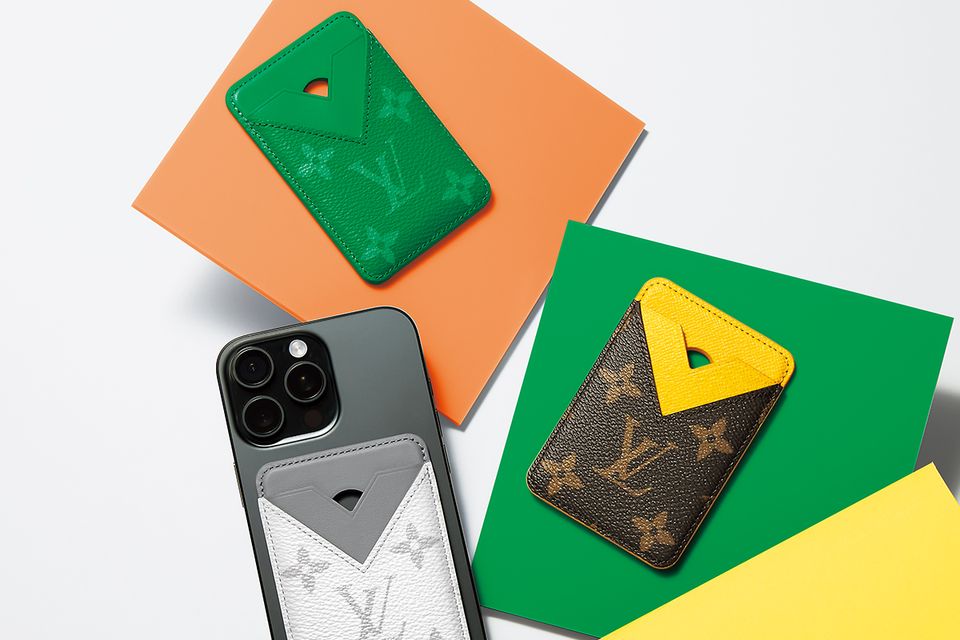 メゾンのこだわりが随所に宿る、モノグラム・キャンバスで仕立てたカードケース。マグネットを組み込んでいるため、iPhone12以降のすべての機種にワンタッチで取り付けできます。『ビジョナリー・ジャーニー』展(2025年9月17日まで開催中)の限定カラーは計5色。「ポルト カルト・マグネット」(縦9.5×横6.5×厚さ0.5センチ)各5万8300円/ルイ・ヴィトン